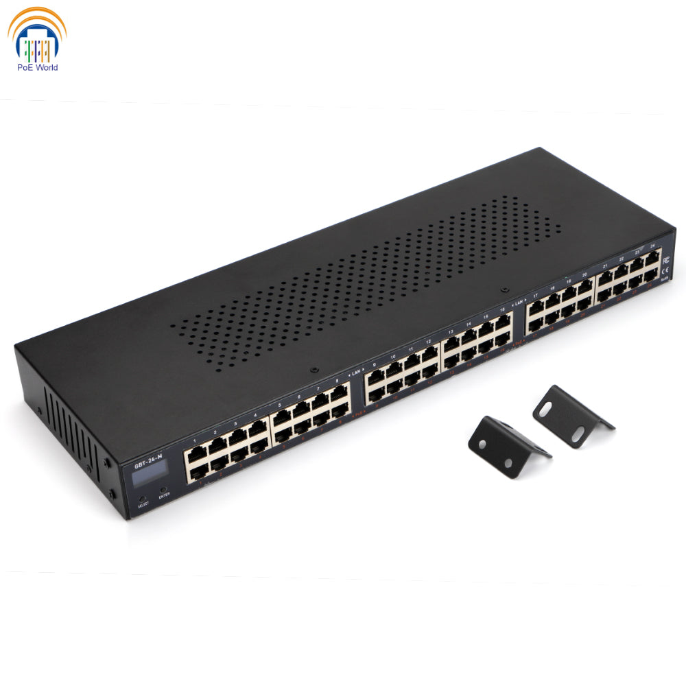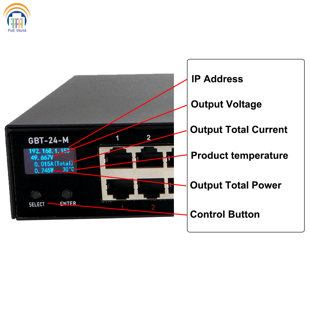 GBT-24-M Managed PoE Injector Gigabit Data Speed 24 Port Mid-Span Injector Support IEEE 802.3 Bt 80W Output Per Port OLED Dispaly Passive Active configuration