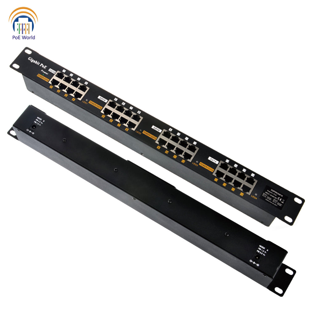16 port Gigabit PoE injector for 802.3af or passive 802.3at devices - see power supply options