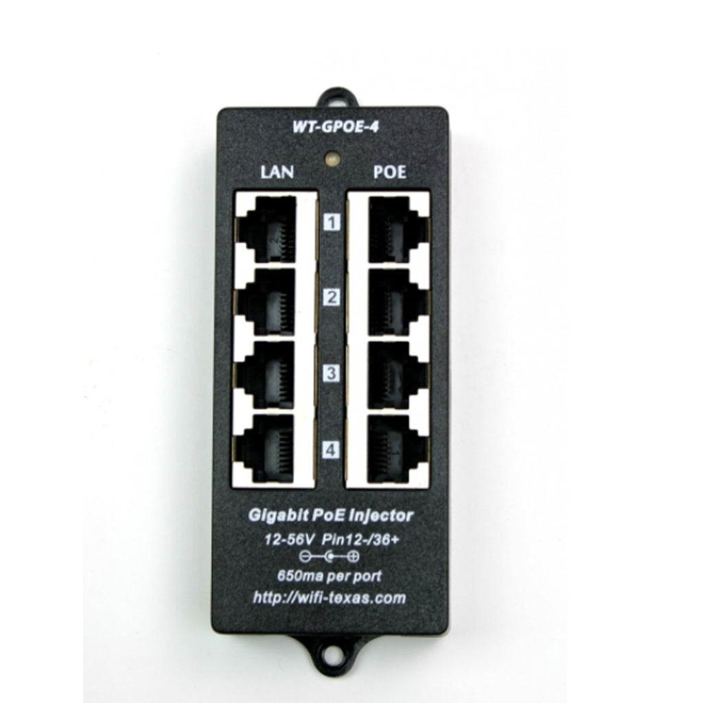 4 Port Gigabit PoE Injector IEEE 802.3af Mode A Midspan Injector with 48 Volt 60 Watt Power Supply ( Power supply was Optional )