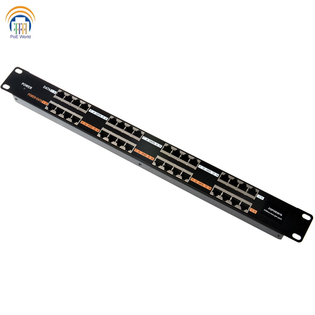 16 Port Passive PoE Injector Rack Mount Midspan Patch Panel With 24 Volt 48 Volt Power Supply for Option, Power Up to 16pcs PoE Cameras