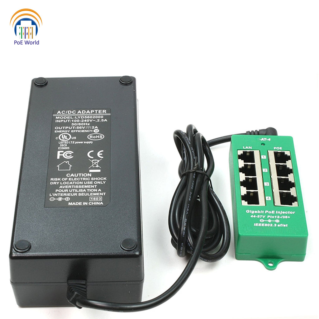 4 Port Active Gigabit PoE Plus Injector Mode A IEEE802.3at Standard with 60 Watt or 120 Watt Power Supply